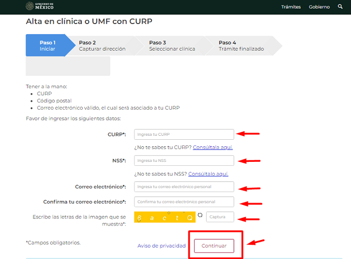Paso 3: La acción siguiente es completar los datos solicitados y posteriormente haces clic en “Continuar”