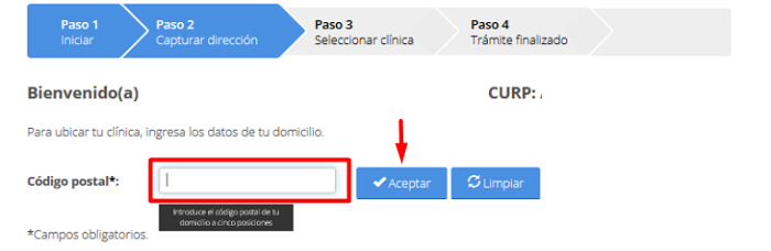 Debes ingresar tu código postal y después marca en “Aceptar”
