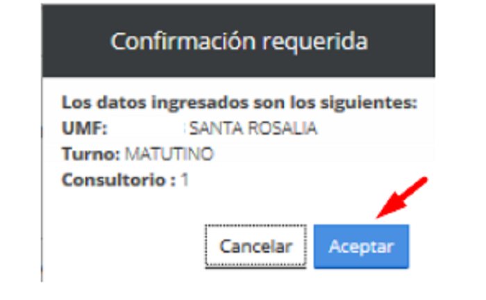 Confirma los datos que aparecen en la pantalla y marca “Aceptar”