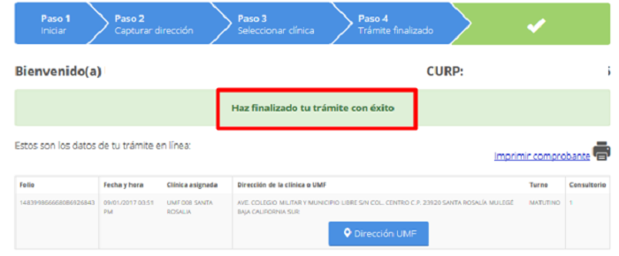 Paso 4: El sistema te indicará que has terminado con el trámite. Marcas imprimir comprobante.