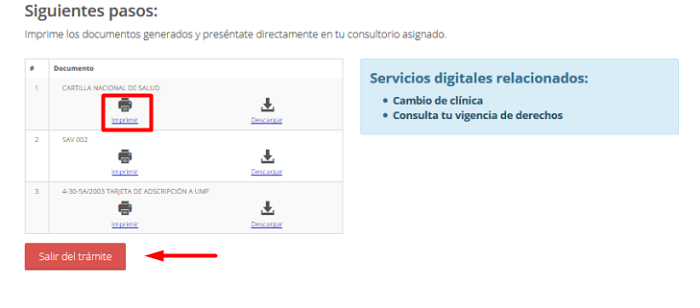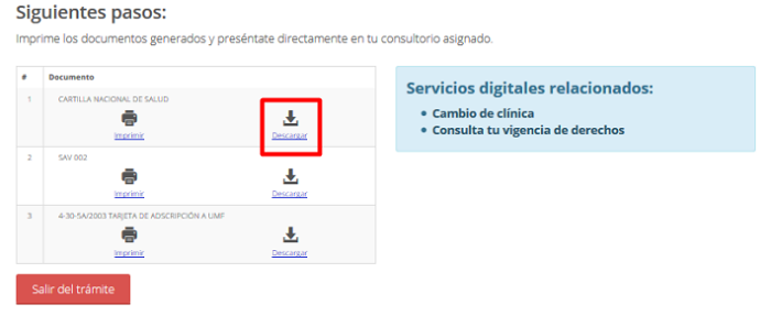 Te aparecerán tres opciones de los documentos que puedes imprimir directamente o descargarlos en tu computadora.