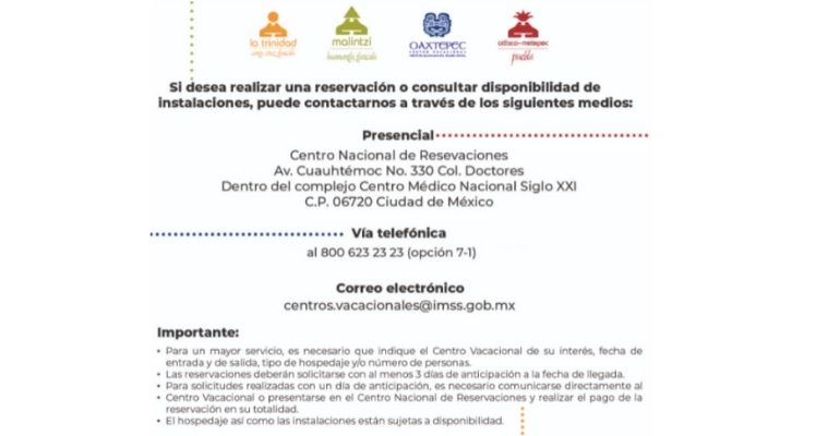 Asimismo, puedes visitar la página oficial del IMSS para más detalles en cuanto a vacacionar en estos centros, ver más información aquí.